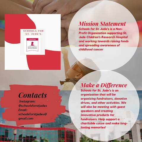 Schools for St. Jude's wants to spread our message of hope and compassion. We are a fundraising organization supporting St. Jude Children's Research Hospital in southeast Texas. We believe that a single action can make a difference in the community, and that collective action can greatly impact the world.